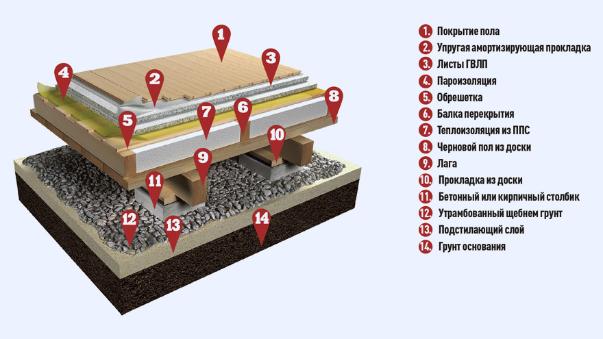 Разработан шаблон спецификации в соответствии с ГОСТ Р 21.1101-2013. Пол на лагах по грунту над холодными подпольями с черновым полом, теплоизоляцией из пенополистирольных плит ППС25-Т, пароизоляцией и обрешеткой из досок и стяжкой из гипсоволокнистых листов. Применяется в малоэтажном строительстве.