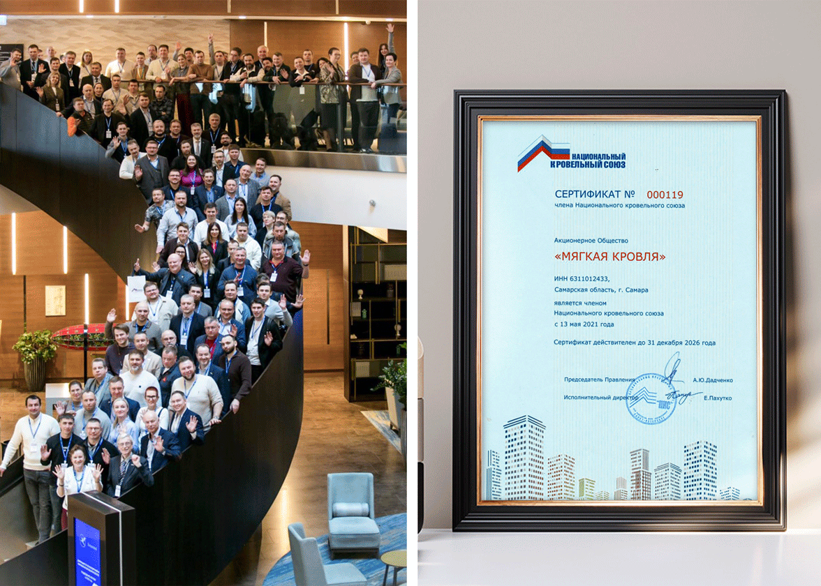 АО «Мягкая кровля» является членом Национального кровельного союза с 13 мая 2021 года.