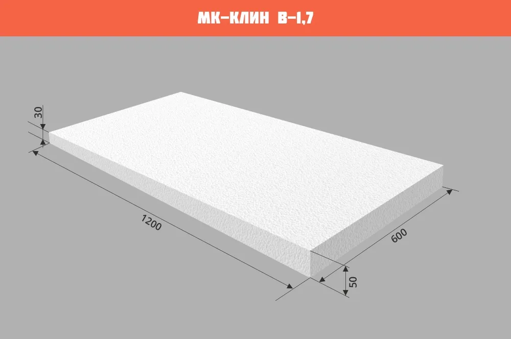 Уклонообразующие элементы изготавливаются из пенополистирола марки ППС 20 Р-А по ГОСТ 1588-2014 с прочностью на сжатие при 10% линейной деформации не менее 120 кПа. По сравнению с классическими способами разуклонки использование МК-КЛИН позволяет производить монтажные работы без применения «мокрых процессов» в устройстве кровли и облегчает нагрузку на перекрытия. Также существенно сокращает время выполнения работ.
